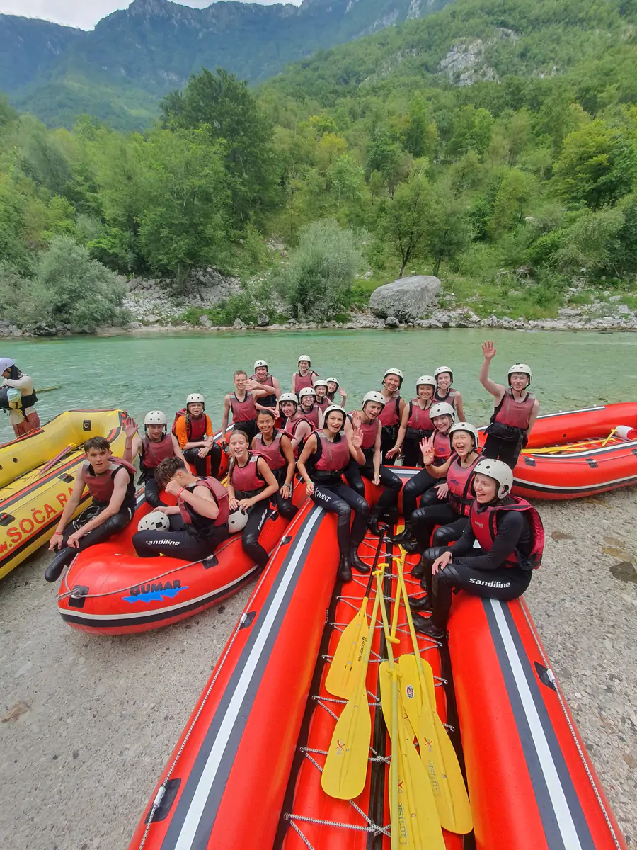 Heute heißt es: Adrenalinkick pur! Früh am Morgen startet ihr vom Resort Grado aus Richtung Slowenien zu einem unvergesslichen Rafting-Abenteuer in den Julischen Alpen. Ausgestattet mit Neoprenanzug, Helm und Paddel geht es gemeinsam mit professionellen Guides auf den türkisblauen Soča-Fluss.
