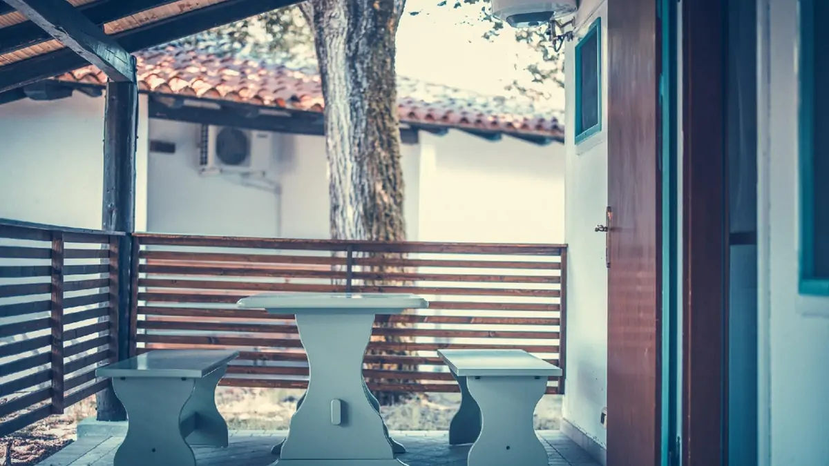 Du wohnst in komfortablen Bungalows. Diesen bieten dir viel Platz zum Chillen und Zusammenleben. Euch erwarten ein Zimmer mit Doppelbett, ein weiteres Zimmer mit zwei Einzelbetten sowie ein gemütlicher Wohnbereich mit ausgestatteter Kitchenette. Das Badezimmer mit Dusche und WC, Klimaanlage, Heizung, Sat-TV und WLAN sorgen für eine Menge Komfort. Auf der überdachten Veranda mit Tisch und Stühlen könnt ihr entspannen, quatschen oder den Tag ausklingen lassen.