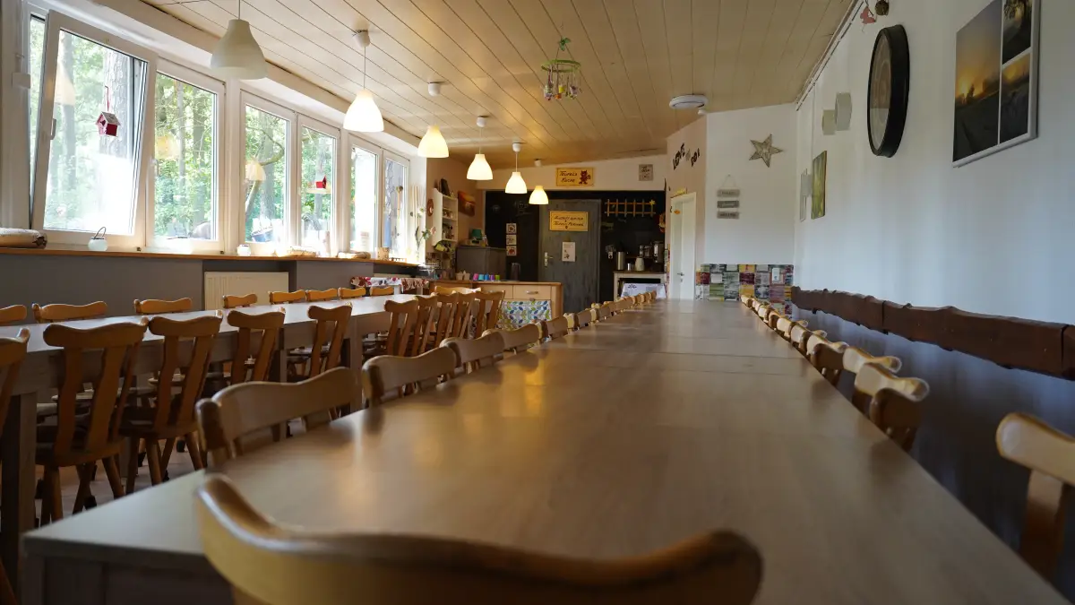 In unserer Anlage kannst du Fußball und Volleyball spielen. Ein kleiner Basketballplatz, der Diskoraum und die Tischtennisplatte sorgen für weitere Unterhaltung. Ausgerüstet mit einem GPS Gerät wirst du zum Geocacher und erlebst eine rasante Waldrallye durch die Dübener Heide. Am Abend sitzt Ihr alle zusammen am Lagerfeuer und backt leckeren Knüppelkuchen.