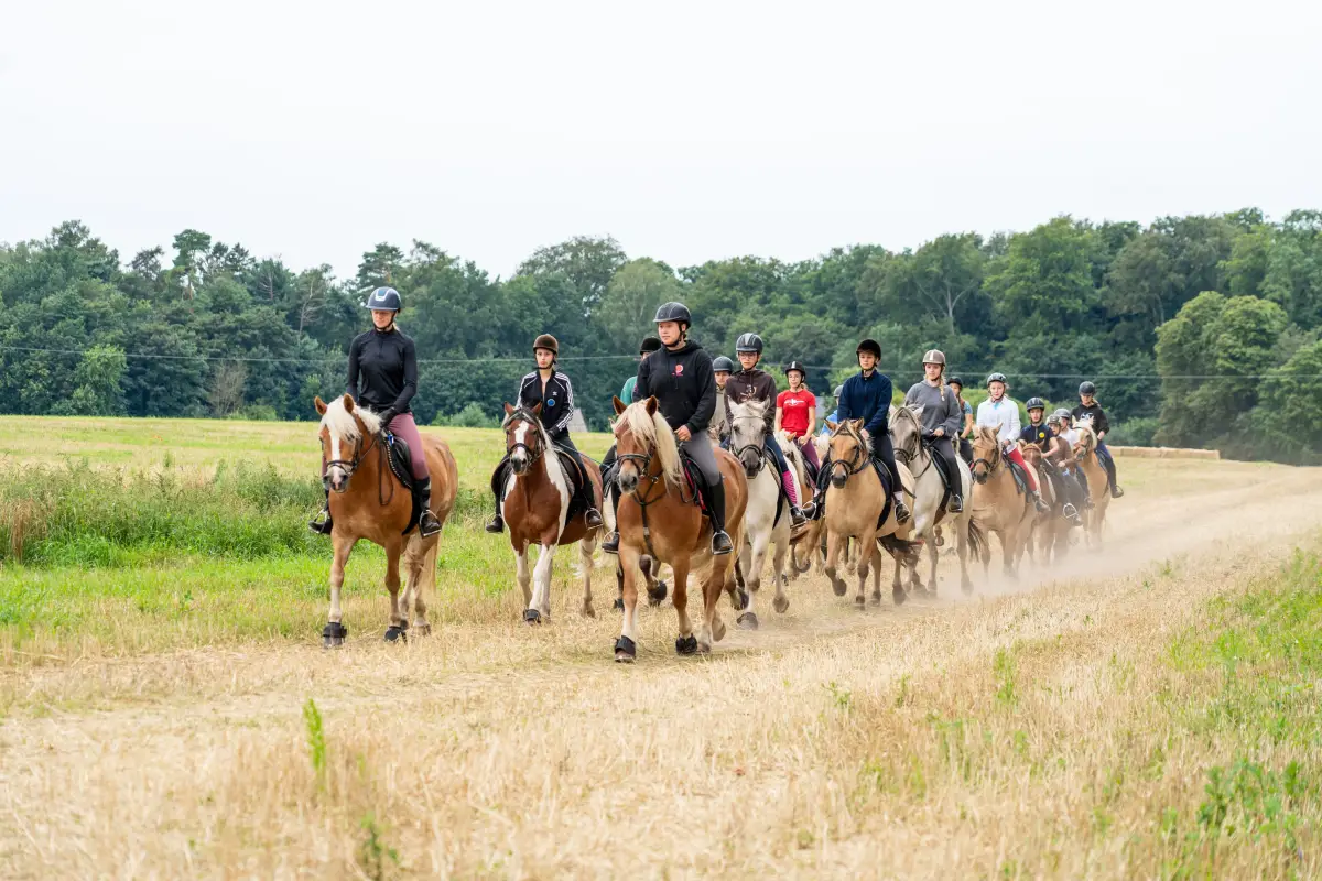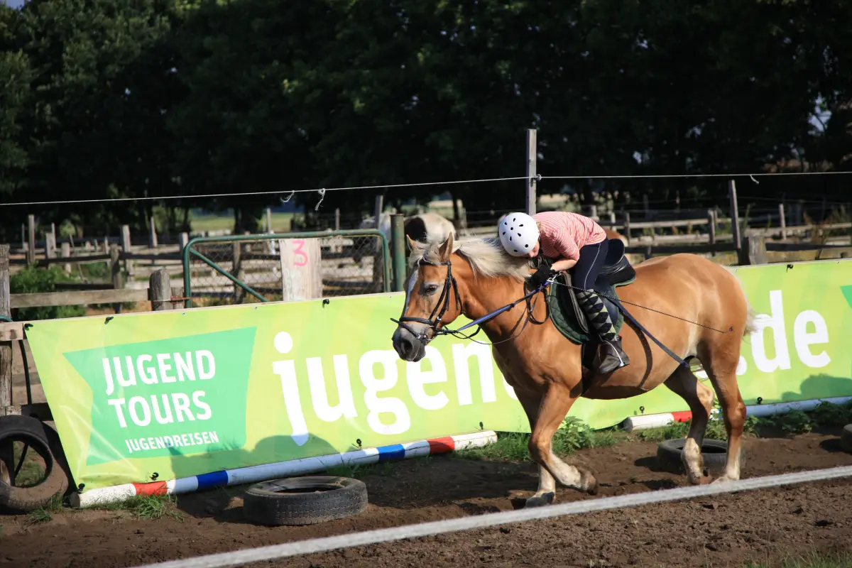Willkommen auf dem Reiterhof Krümmel! Nach deiner Ankunft – egal ob mit dem Bus oder gemeinsam mit deinen Eltern – wirst du von deinen Betreuerinnen und Betreuern herzlich begrüßt. Nach einer kleinen Belehrung und dem ersten Rundgang über den Hof lernst du dein Zuhause für die nächste Woche kennen. Gemeinsam beziehst du dein Zimmer, schaust dir den Stall an und begrüßt schon einmal die ersten Pferde. Beim Abendessen werden neue Freundschaften geschlossen, und beim gemütlichen Kennenlernabend schonmal die ersten Reiterfahrungen ausgetauscht.