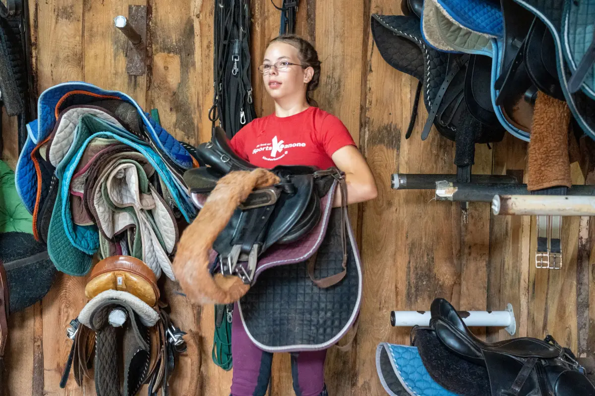 Heute ist Highlight-Tag! Nach dem Frühstück sattelst du dein Pferd für den großen Geländeritt. Gemeinsam mit deinen Reitlehrerinnen reitest du durch Wälder, Wiesen und kleine Wege rund um den Hof – ein unvergessliches Erlebnis für alle Pferdefreundinnen. Am Nachmittag hast du Freizeit zum Chillen oder Baden. Abends heißt es dann: Showtime! Bei unserer kleinen Reiterhof-Show kannst du zeigen, was du gelernt hast – und das natürlich vor begeistertem Applaus deiner neuen Freundinnen!