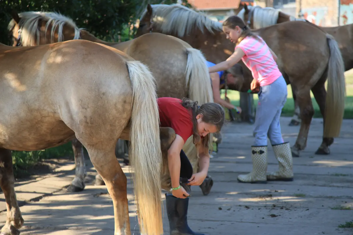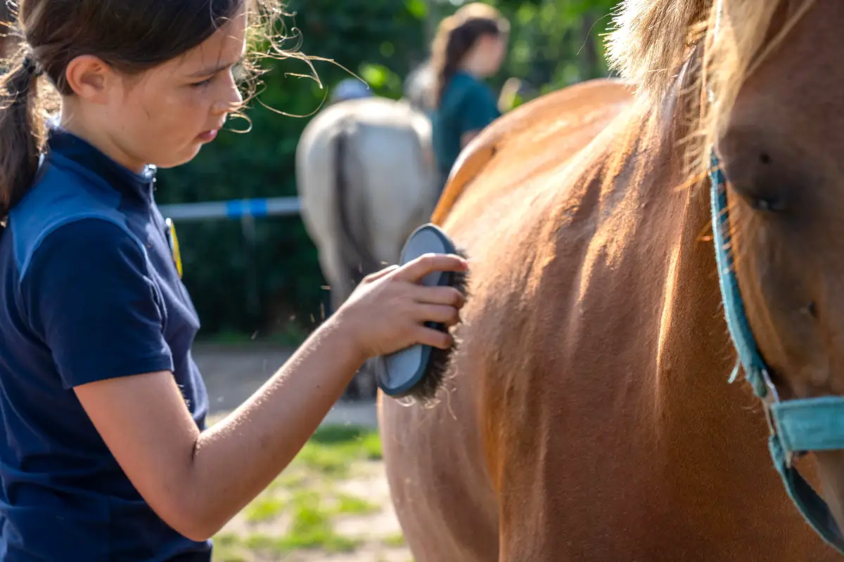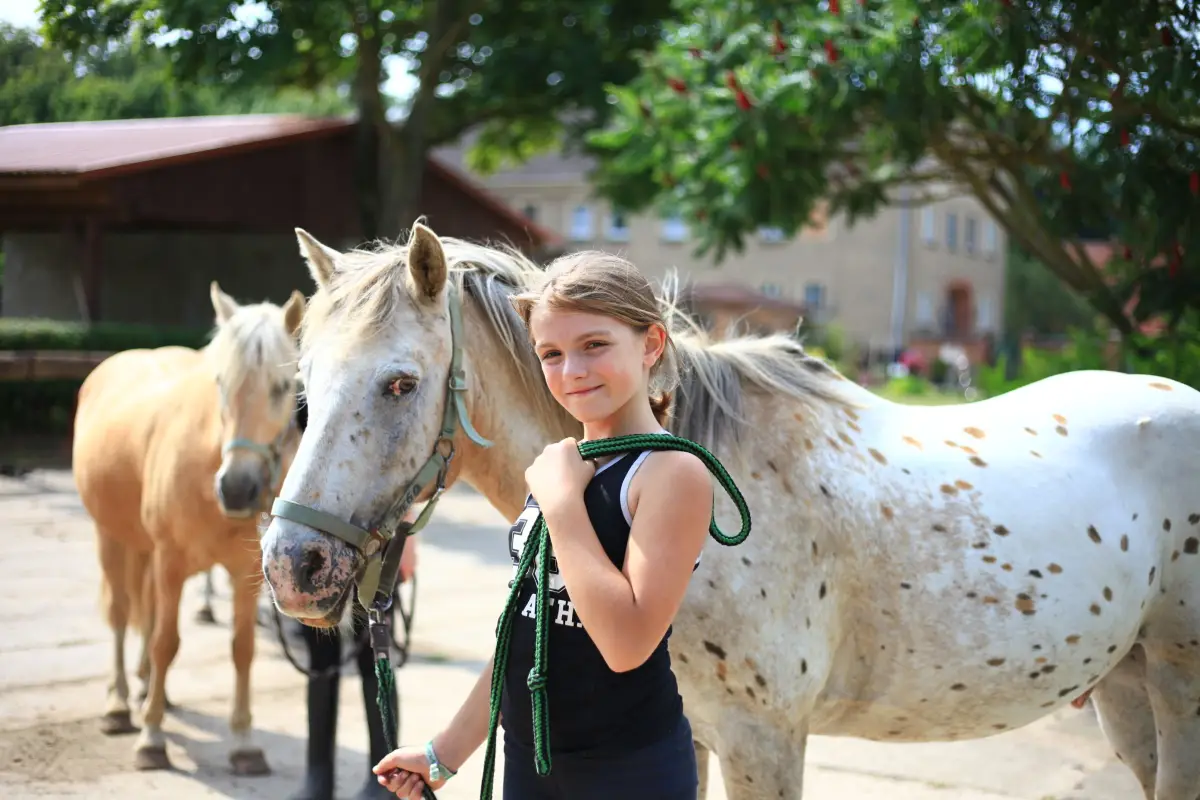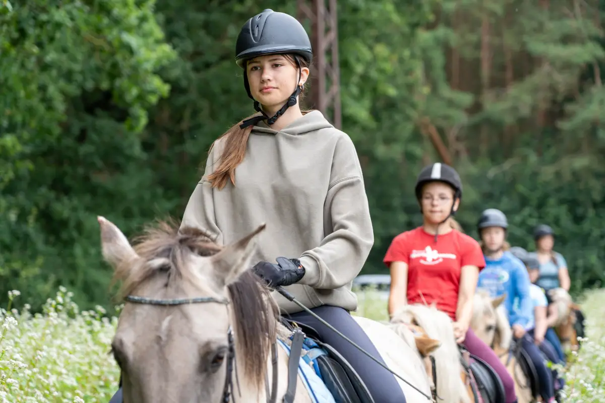 Heute geht’s wieder in den Stall – jedes Pferd freut sich auf „sein Mädchen“. Beim Vormittagstraining stehen diesmal Theorie und Reitpraxis im Mittelpunkt: Wie füttert man richtig? Was braucht ein Pferd, um gesund zu bleiben? Und wie erkennt man, wenn es sich mal nicht wohlfühlt? Am Nachmittag hast du Freizeit – Zeit zum Basteln, Malen oder einfach zum Chillen auf der Wiese. Wenn du magst, kann mit dem Rad zum kleinen Badeausflug am Nebelsee gestartet werden. Natürlich ist unser Team auch hier mit dabei. Abends steht ein lustiger Karaoke-Abend oder eine kleine Mottoparty auf dem Programm – je nach Stimmung!