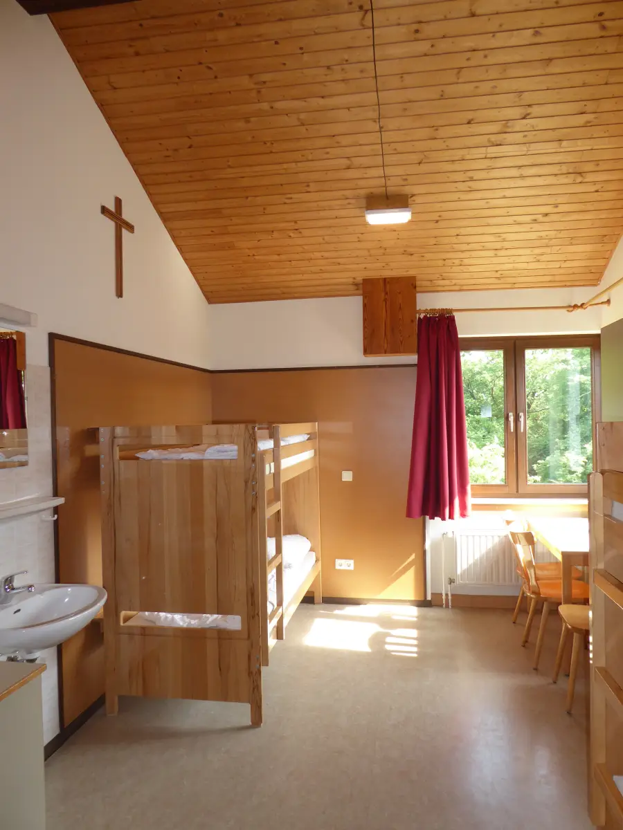 Du und Deine neuen Freunde wohnen in einem freundlich eingerichteten Bettenhaus in 4 bis 6 Bettzimmern und DU/WC auf der Etage. Unser Koch, den Du schon nach zwei Tagen mit 'Du' anreden wirst, serviert Dir in unserem gemütlichen Speiseraum dreimal am Tag die leckeren Mahlzeiten. Neben der Turnhalle zum Kicken, einem großen Bastelraum, Tischtennisplatten und Lagerfeuerstelle verfügt das Haus über eine große Freifläche, ein Paradies zum Spielen und Toben.
