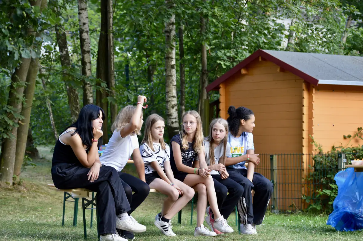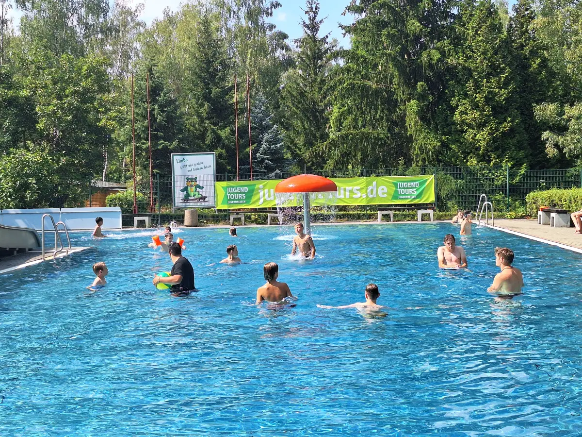 Heute steht das Kinderfest an – und das bedeutet: Kreativität, Spaß und Lachen pur! Du malst, bastelst, spielst, reitest vielleicht auf Ponys, feierst eine witzige Camp-Hochzeit oder versuchst dich beim Dart und Trampolinspringen. Am Nachmittag entscheidest du selbst: Lieber ein kleiner Stadtausflug nach Limbach-Oberfrohna, nochmal baden im Pool, sportliche Action oder basteln mit deinen Freunden? Am Abend gibt’s dann einen gemütlichen Filmabend mit Snacks und Lieblingsfilmen.