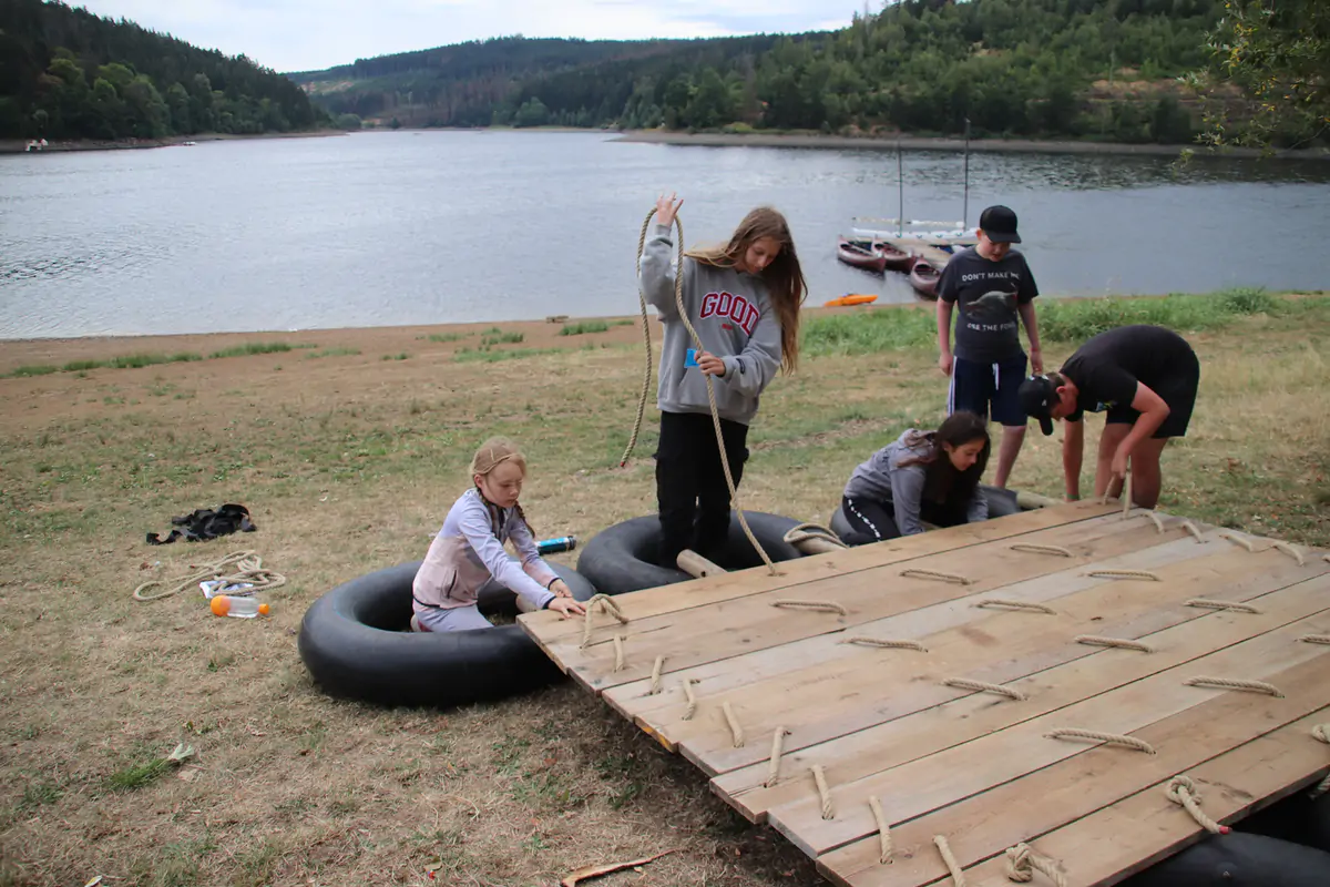 - Floßbau und Floßfahren mit ausgebildeten Instrukteuren am Stausee