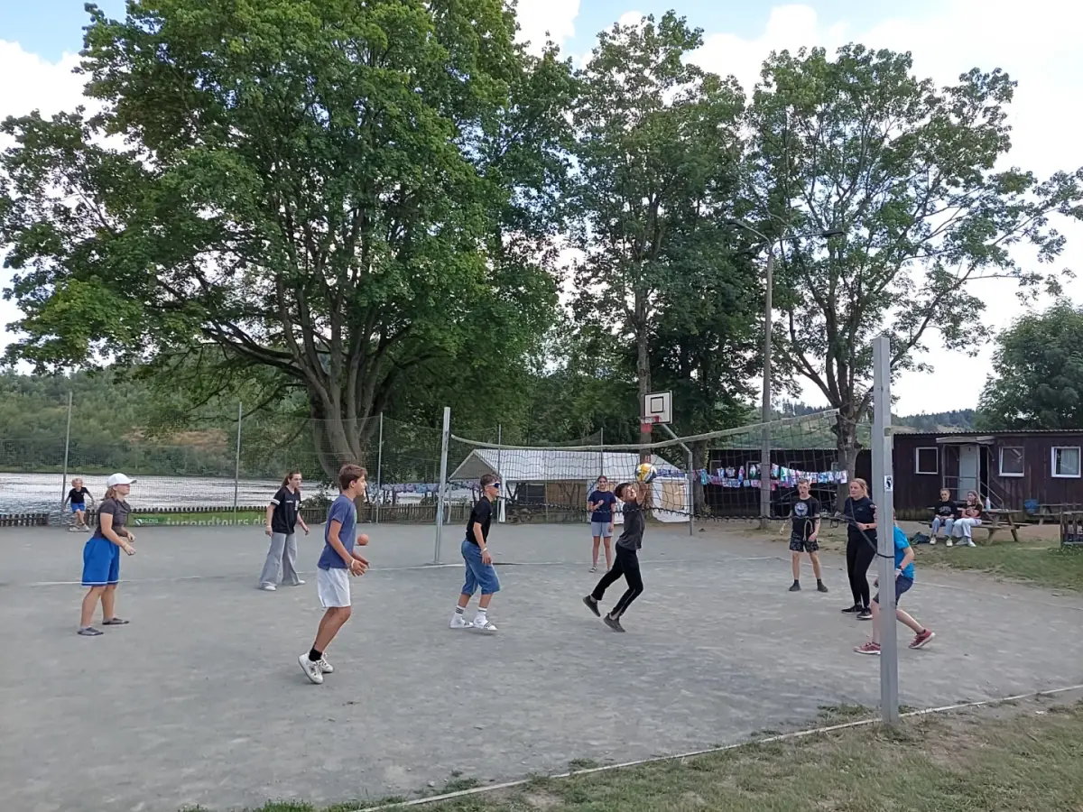 Am Nachmittag reist du an – entweder mit dem Bus aus deiner Heimatregion oder gemeinsam mit deinen Eltern bei Eigenanreise. Auf dem Gelände der Jugendbegegnungsstätte an der Bleilochtalsperre heißt es: Willkommen im Ferienabenteuer! Nach dem Einchecken lernst du deine Betreuerinnen und Betreuer kennen, die dich während der gesamten Woche begleiten und jederzeit für dich da sind. Gemeinsam startet ihr in euer Ferienabenteuer mit einem leckeren Abendessen, bevor es bei lustigen Kennenlernspielen und einer spannenden Camp-Rallye so richtig losgeht.