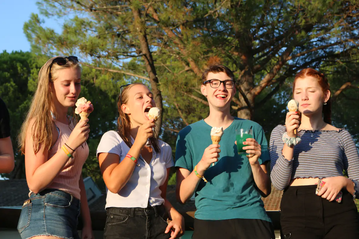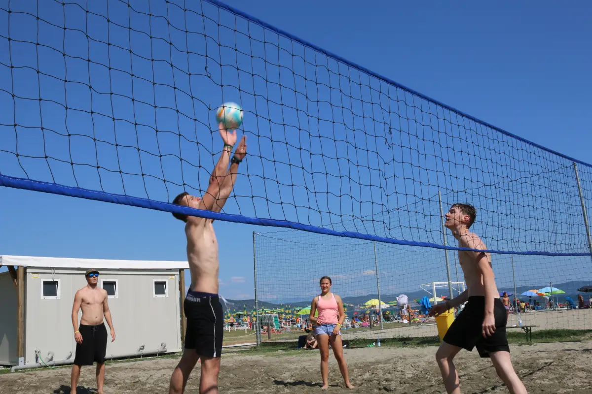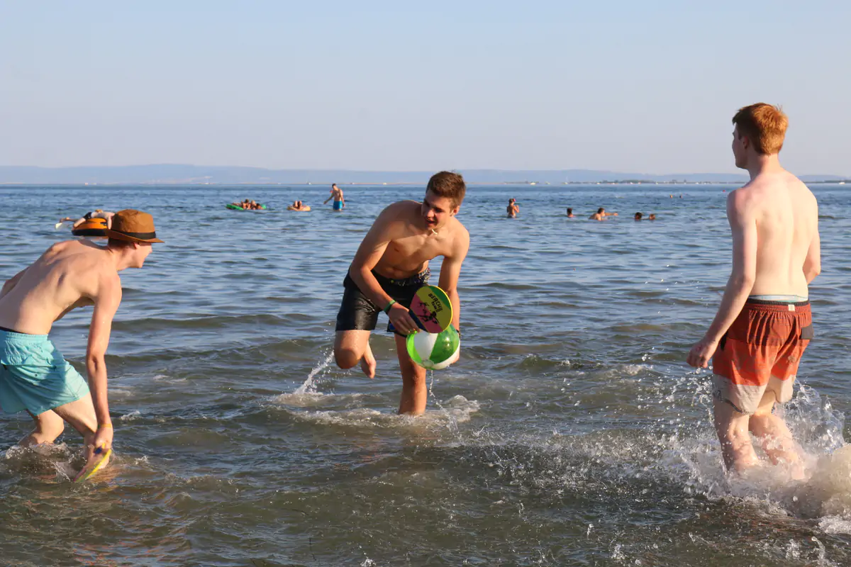 Am Vormittag erreichst du Monfalcone an der italienischen Adria. Nach dem Infowalk, bei dem dir das Gelände, Foodspots und wichtige Anlaufstellen gezeigt werden, stärkst du dich beim Frühstück. Danach gibt’s die Belehrung, die Bändchenvergabe und – bis deine Unterkunft bezugsfertig ist – Zeit zum Ankommen: Chillen am Pool, ein erster Sprung vom Sprungturm oder einfach Sonne tanken am Strand. Am Nachmittag erfolgt die Bungalowvergabe, und beim gemeinsamen Abendessen lernst du dein Betreuerteam und die anderen Teilnehmer besser kennen. Der Abend klingt mit lockeren Kennenlernspielen und Musik in der Chillout-Area aus.