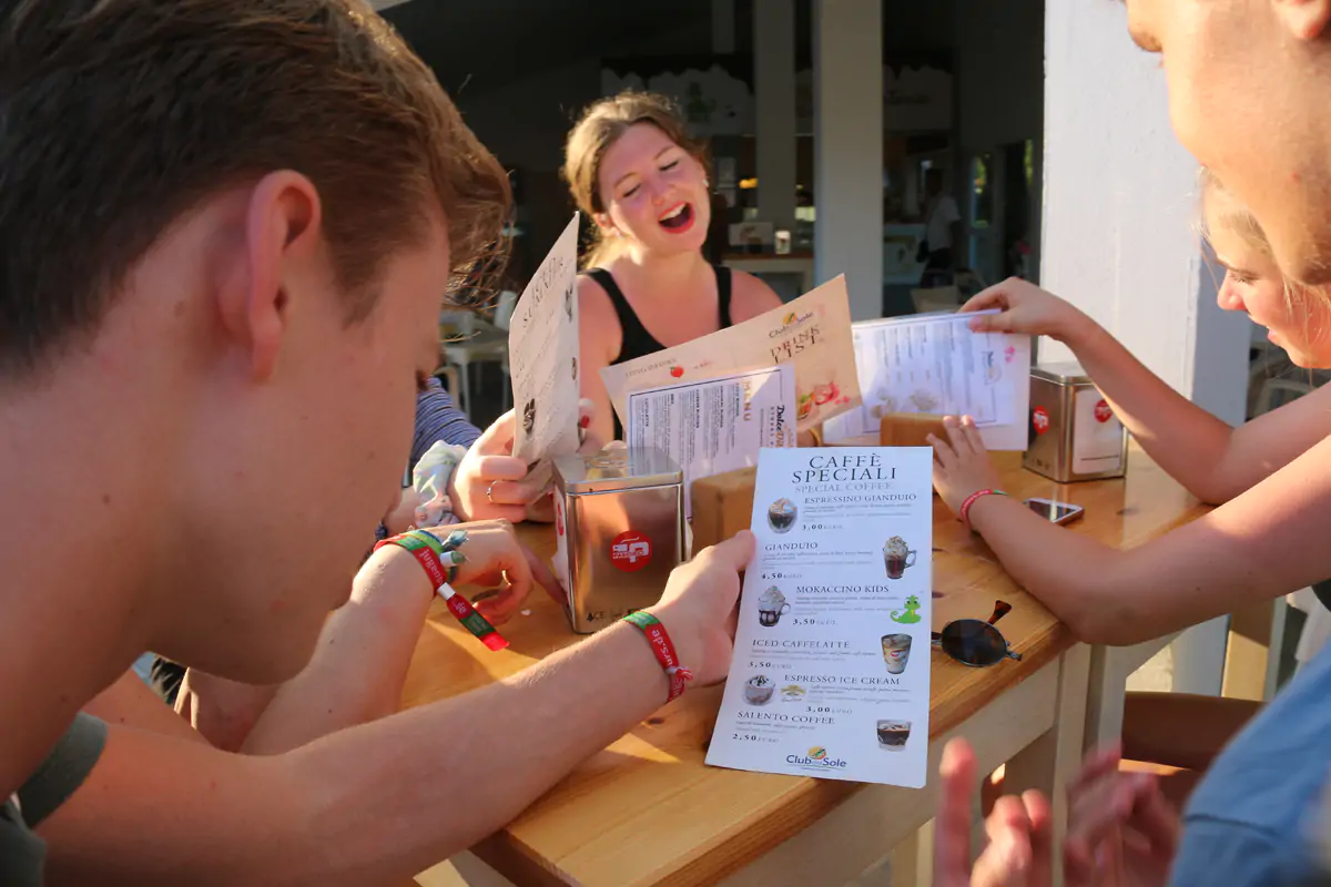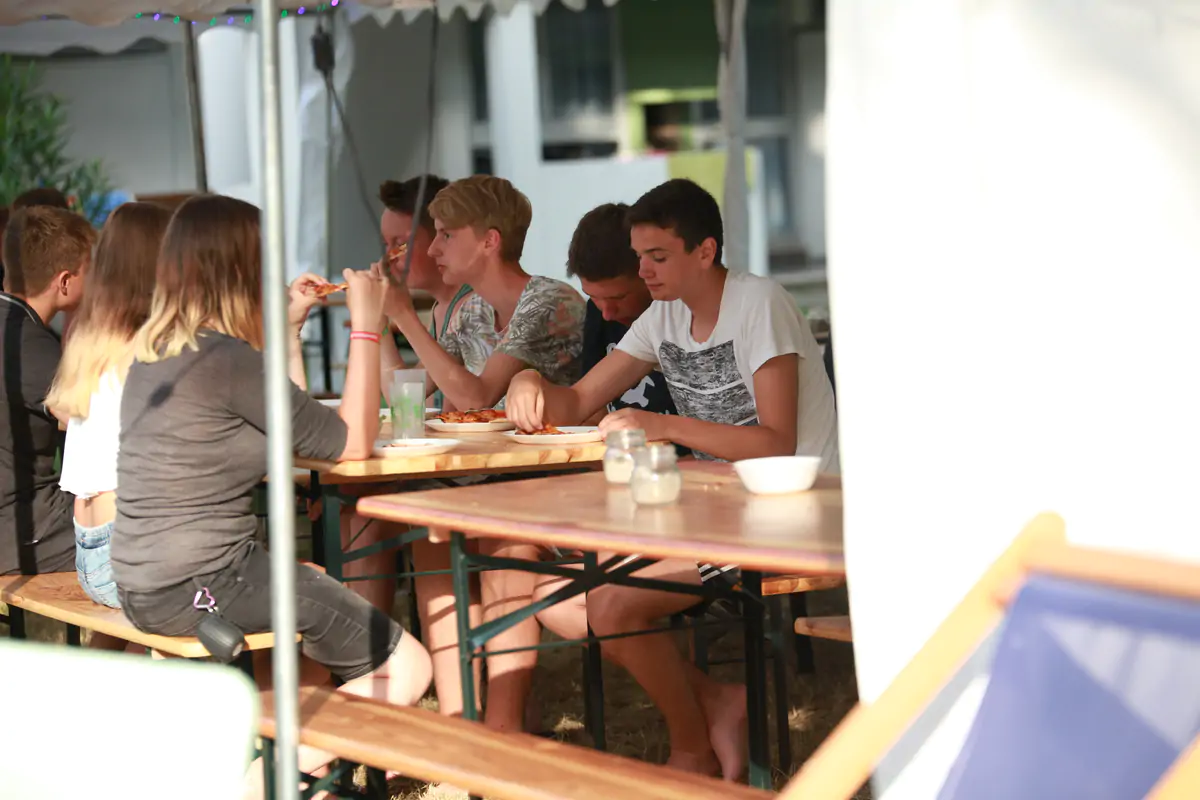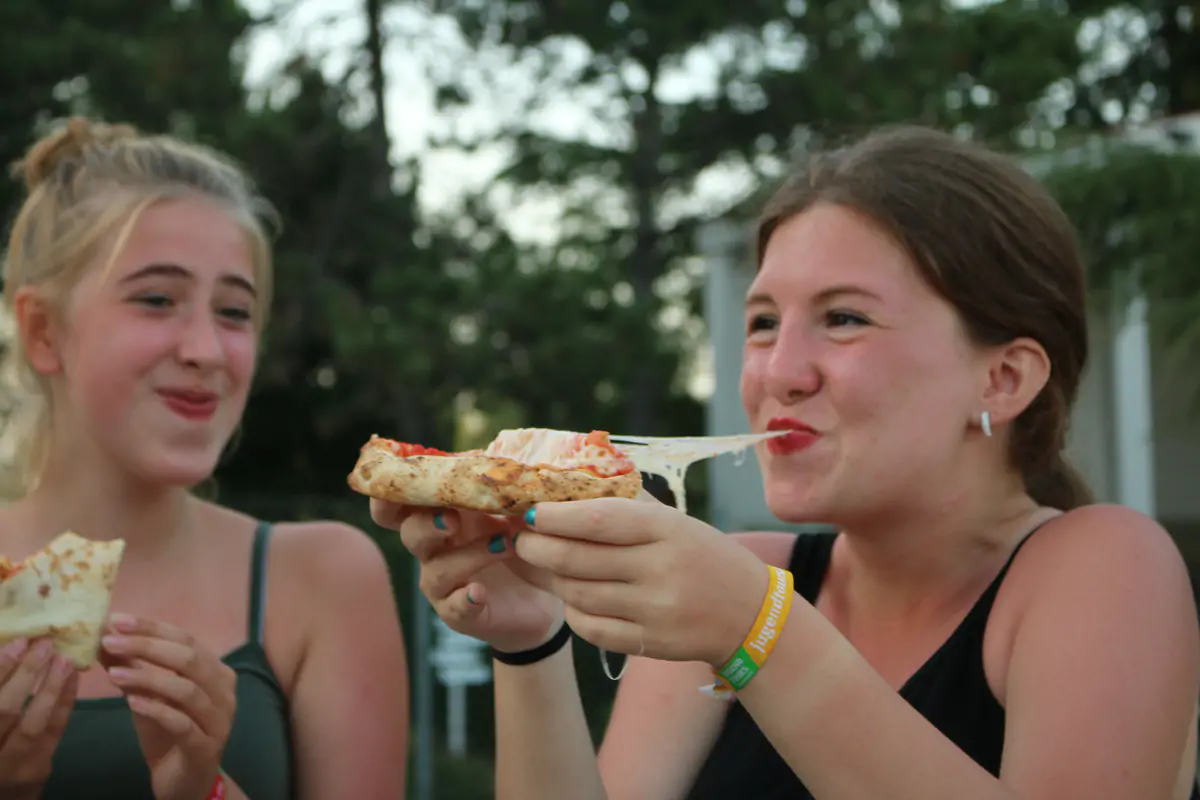 Unser Clubbereich macht deine Ferien endgültig rund: Im großen Gruppenzelt geht es heiß her und unser Animationsprogramm lässt dir keine Wahl außer mitzumachen. Die gemütliche Chill Out-Area nebenan und unsere Bar mit den Erfrischungsgetränken laden zum entspannten Verweilen ein. Typisch für den Jugendtours-Cluburlaub ist das Langschläferfrühstück. Bei uns startest du entspannt in den Tag. Von 10 bis 24 Uhr gibt’s gratis Durstlöscher: Wasser aus dem Zapfhahn, Säfte und leckere Bolero-Drinks – ohne Konservierungsstoffe und zuckerfrei. Abends sorgt unsere Küchencrew zusammen mit deinem Betreuerteam für Abwechslung auf dem Teller: mal Burger oder Nudeln – immer mit frischen Salaten dazu.