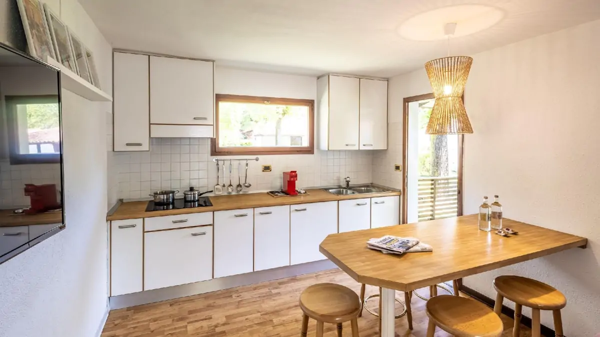 Du wohnst in komfortablen Bungalows. Diesen bieten dir viel Platz zum Chillen und Zusammenleben. Euch erwarten ein Zimmer mit Doppelbett, ein weiteres Zimmer mit zwei Einzelbetten sowie ein gemütlicher Wohnbereich mit ausgestatteter Kitchenette. Das Badezimmer mit Dusche und WC, Klimaanlage, Heizung, Sat-TV und WLAN sorgen für eine Menge Komfort. Auf der überdachten Veranda mit Tisch und Stühlen könnt ihr entspannen, quatschen oder den Tag ausklingen lassen.