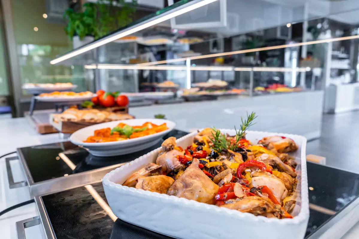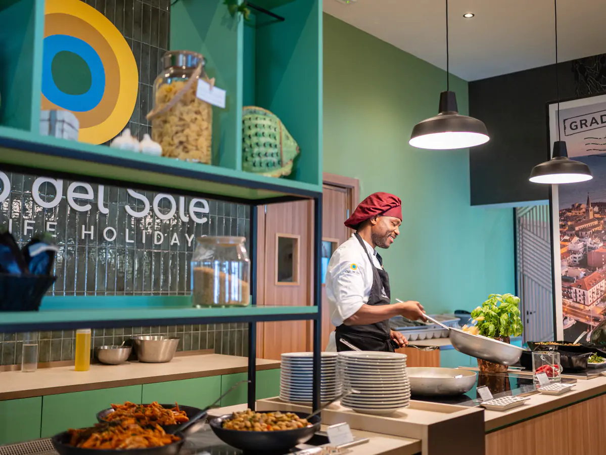Morgens startest du mit einem abwechslungsreichen Frühstücksbuffet in den Tag – z. B. mit frischen Brötchen, süßem Gebäck, Obst, Joghurt oder warmen Klassikern wie Eiern und Bacon. Abends wartet ein internationales Buffet mit Fleisch- und Fischgerichten, vegetarischen Optionen, Pizza und regionalen Spezialitäten. Perfekt, um nach Strand, Action oder Sport wieder Energie zu tanken und gemeinsam zu essen, ohne euch um irgendwas kümmern zu müssen.