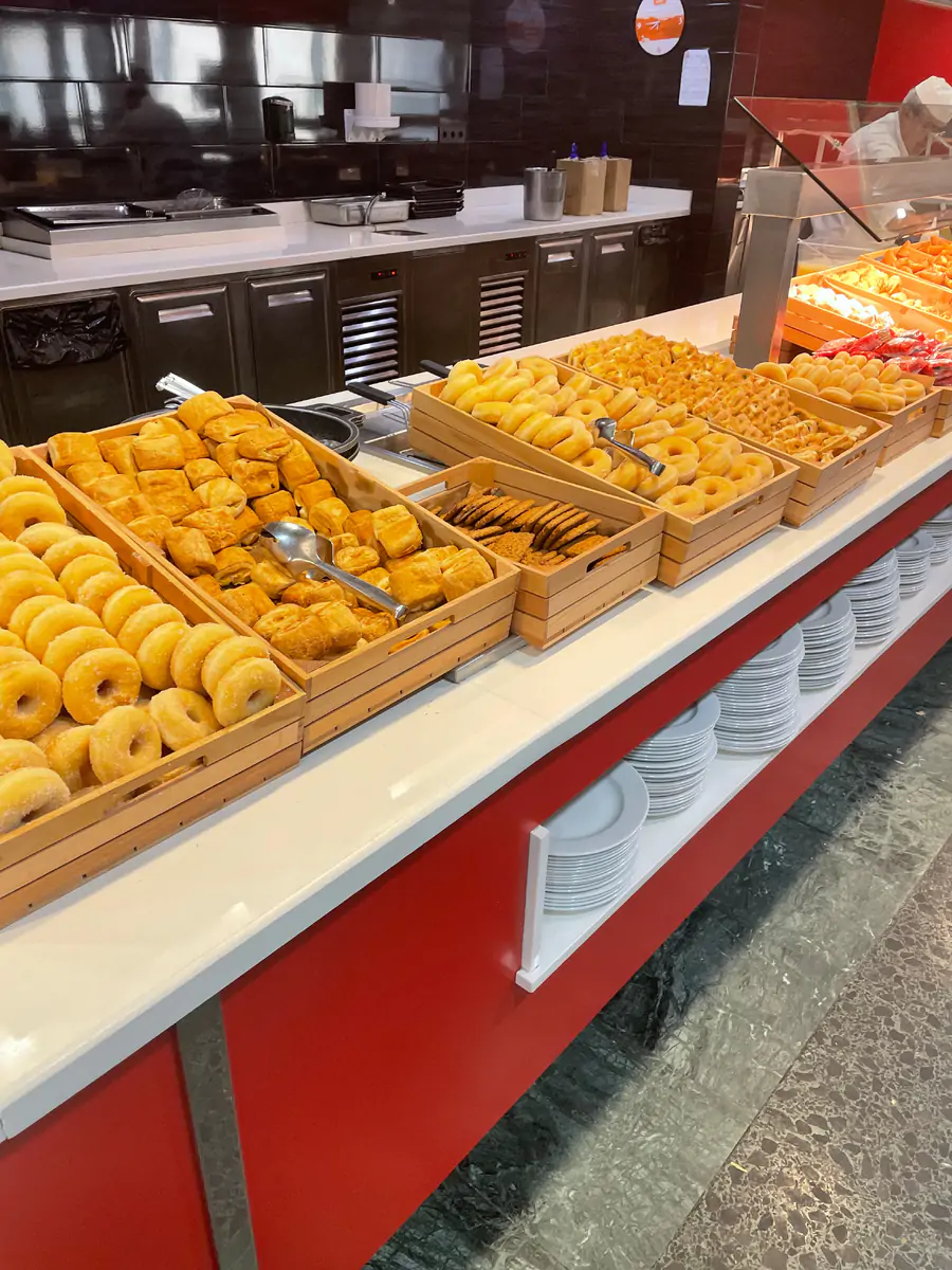 Nach Belieben kannst du auf den kostenlosen Sonnenliegen der Sonnenterrasse an den hoteleigenen Pools abhängen und einen süßen Cocktail an der Poolbar schlürfen. Zum Hotel gehören zwei Pools, mehrere Bars, ein Restaurant, 24 Stunden Rezeption, Möglichkeiten für Billard und Tischtennis, Tennis, Fußball, Basketball, Shops. Das reichhaltige Frühstück, Mittag- und Abendessen serviert dir das Servicepersonal als Buffet im hoteleigenen Restaurant.