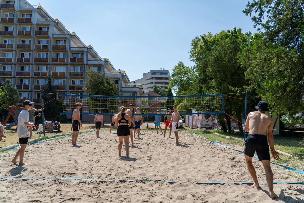 Nach einem späten Frühstück erkundest du am Vormittag die charmante Stadt Siófok. Beim Shoppingausflug schlenderst du über Promenaden, stöbesrt in kleinen Boutiquen oder genießt einen erfrischenden Softdrink in einem der vielen Straßencafés. Am Nachmittag wird’s sportlich: Im Kletterpark Zamárdi warten Ziplines, Hindernisse und jede Menge Adrenalin, während am Strand das Volleyball-Turnier für ordentlich Stimmung sorgt. Am Abend geht’s bei den Beachgames hoch her – hier zählen Teamgeist, Spaß und vielleicht ein bisschen Ehrgeiz.