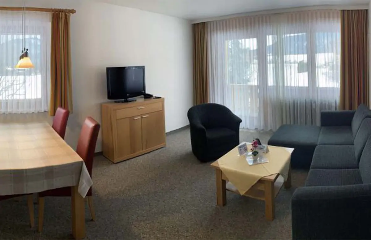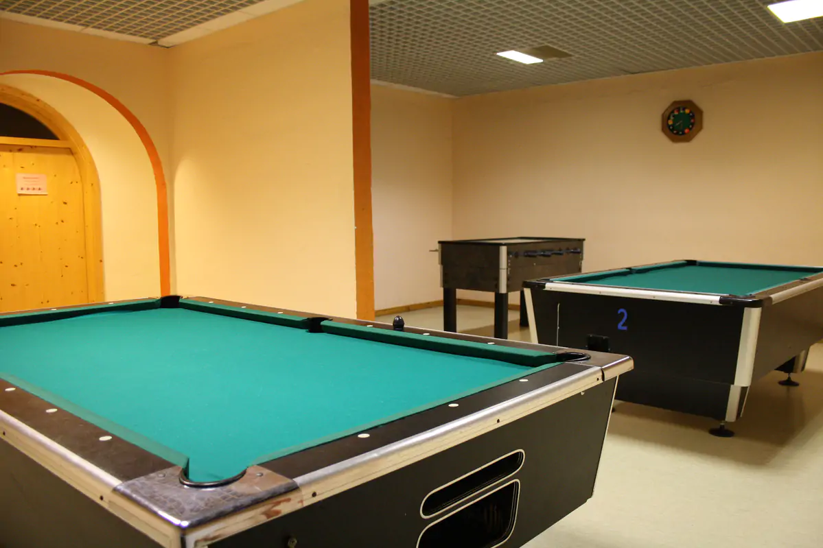 Du wohnst in geräumigen 2- bis 5-Personen-Apartments mit Dusche/WC, Kochnische, Sitzecke, TV und Balkon oder Terrasse (2er Apartments gegen geringen Aufpreis buchbar). Nach einem anstrengenden Pistentag stehen euch außerdem die kostenlose Nutzung des hoteleigenen Hallenbads zur Verfügung. Außerdem gehören zu unserer Anlage ein Billard- und Tischtennisraum, Airhockey und ein gemütlicher Aufenthaltsraum zum gemeinsamen Kennenlernen, Kartenspielen und Zusammensitzen.