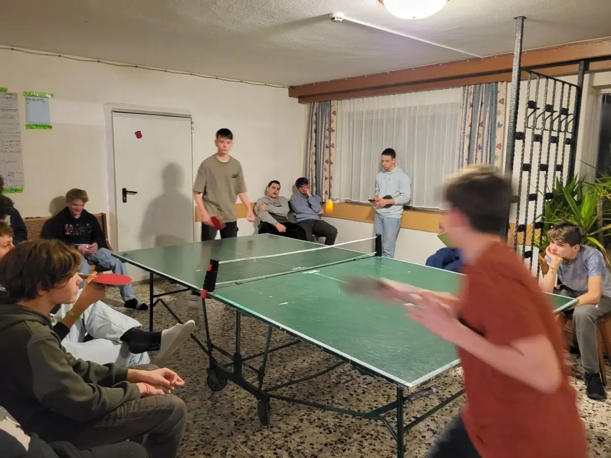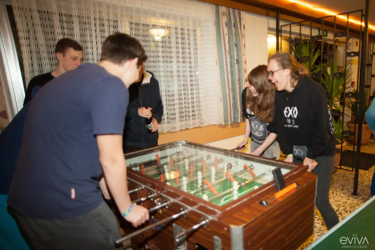 Richtig cool wird’s aber im großen Speise- und Aufenthaltsraum. Hier trefft ihr euch zum Essen, Chillen oder für jede Menge Action: Tischtennis, Kicker, kleine Turniere und Spieleabende sorgen dafür, dass auch abseits der Piste keine Langeweile aufkommt. Und wer Lust hat, zeigt beim Karaoke, welche versteckten Talente in ihm stecken!