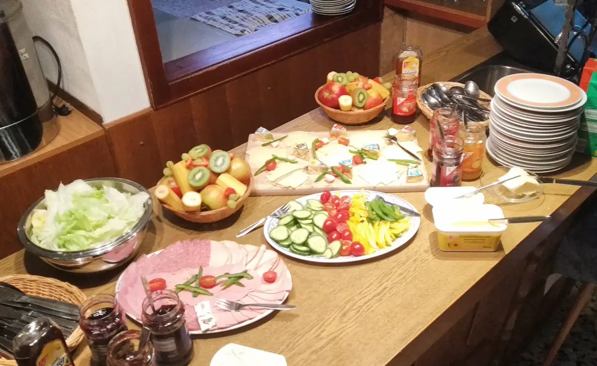 - Vollverpflegung (Frühstücksbuffet, selbst bereitete Lunchpakete, warmes Abendessen)