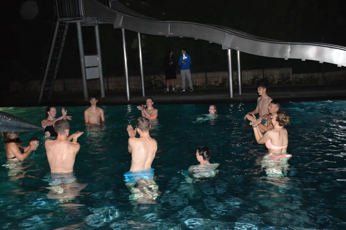 Der Vormittag steht wieder ganz im Zeichen des Volleyballs. Jetzt kannst du zeigen, was du in den letzten Tagen gelernt hast – deine Aufschläge sind präziser, die Pässe sicherer, und die Stimmung auf dem Feld ist top! Am Nachmittag heißt es dann: Ab ins Freibad! Nach dem Training sorgt das solarbeheizte Becken mit Rutsche und Wasserspielen für die perfekte Abkühlung. Zurück im Camp bleibt Zeit für Freizeit – ob Kicker, Tischtennis oder einfach mal entspannen.